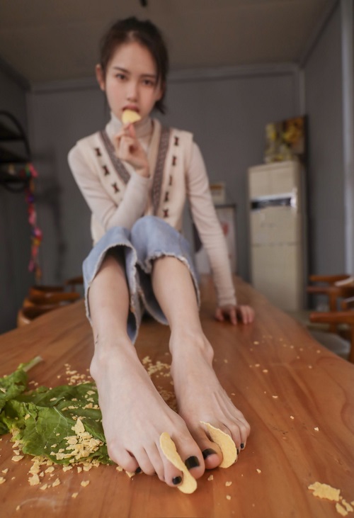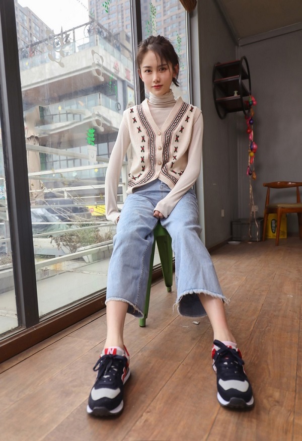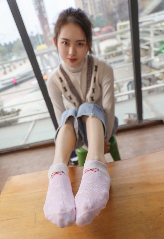 袜啵啵231期:小甜豆-板鞋、白色蕾丝袜、可拆卸牛仔裤、裤里丝